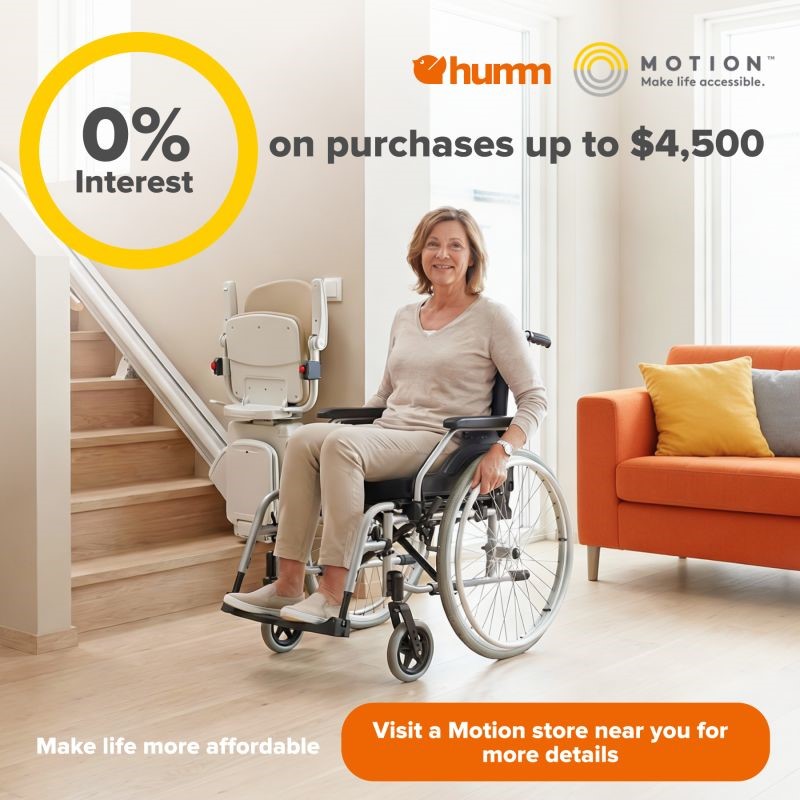 Humm can be used for a wide range of products and services at Motion, including mobility equipment (like wheelchairs, scooters, walkers), home accessibility solutions (such as stairlifts, ramps, and bathroom safety), and more. If Motion offers it, you can likely finance it with humm.